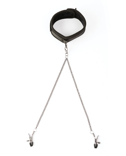 Sei Mio Twin Tweaks Velvet Collar w/Nipple Clamps - Black