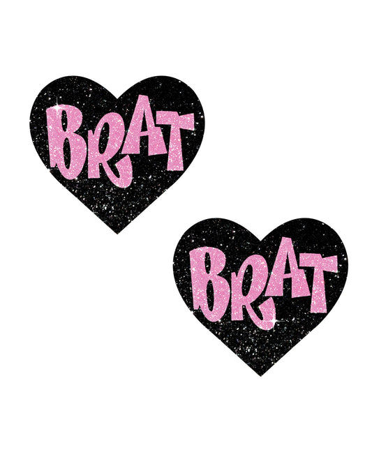 Neva Nude Brat Glitter Heart Pasties - Black/Pink O/S