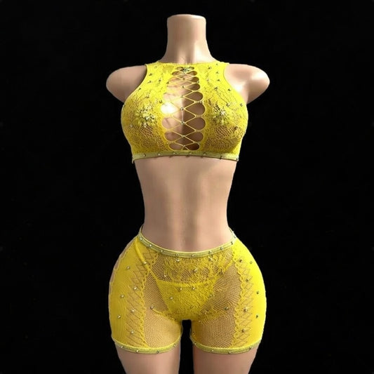 Hot Nights- Sugar Rush Rhinestone 3pc Short Set
