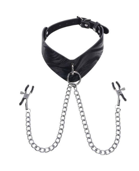 Sportsheets Velvet Noir Collar & Removable Clamps - Black
