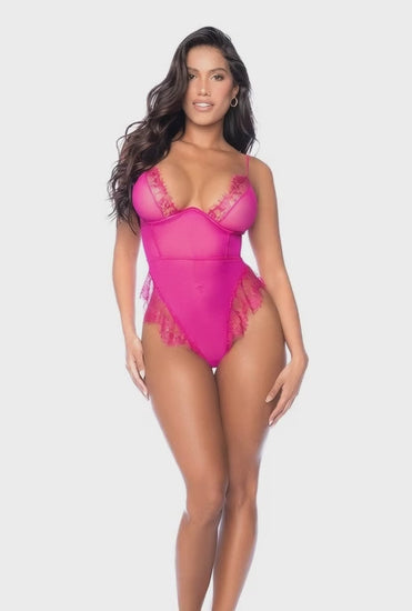 This classic bodysuit is reimagined in a trendy color palette that flatters any skin tone. It features underwire for enhanced support, eyelash lace trims, adjustable straps, and a hook-and-eye crotch closure for a perfect fit.