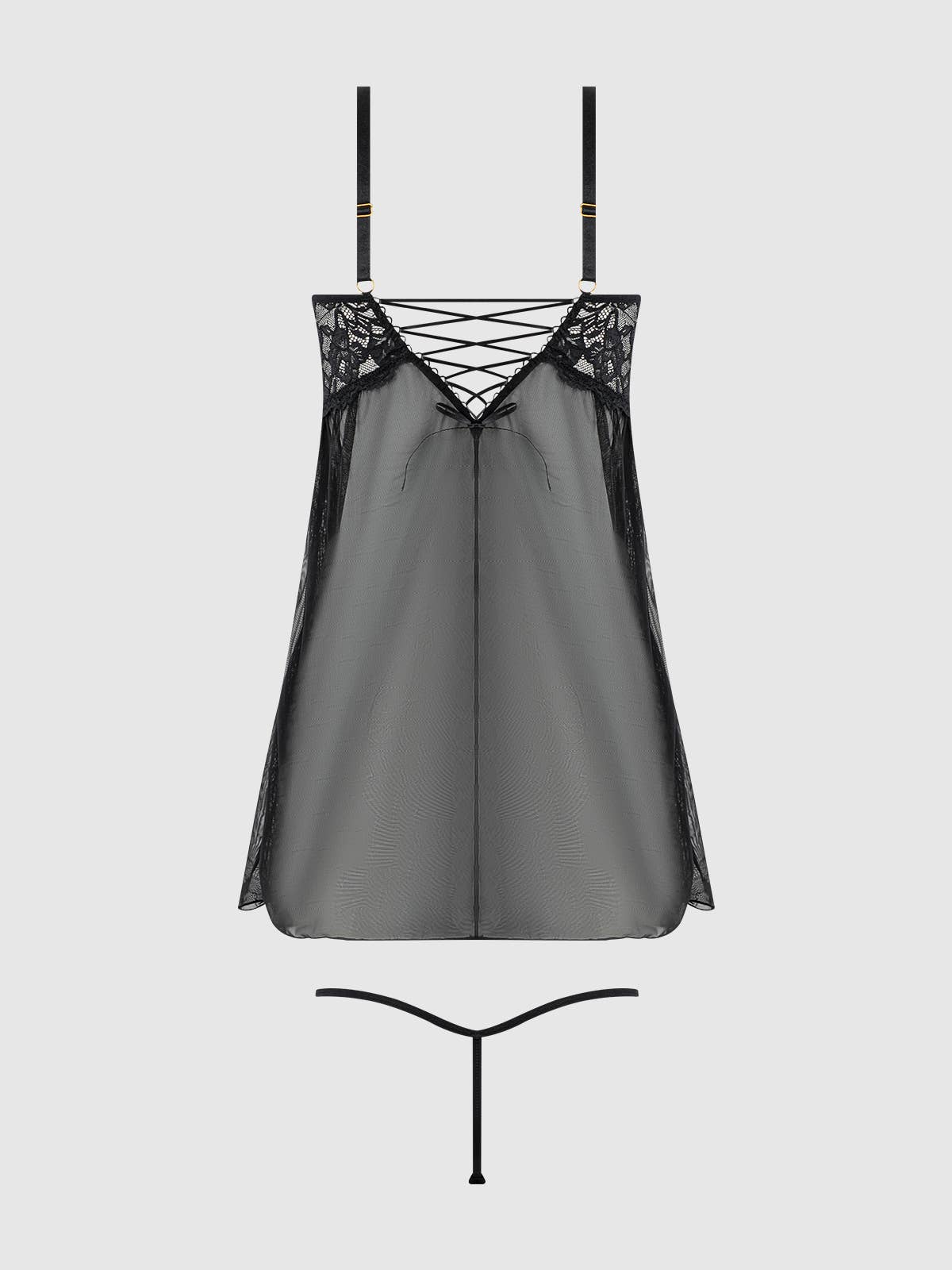 Embrace cottagecore charm with the Bella Lace & Mesh Babydoll & G-String Set. Featuring delicate floral lace and chic lace-up details, this set combines timeless elegance with playful sophistication.