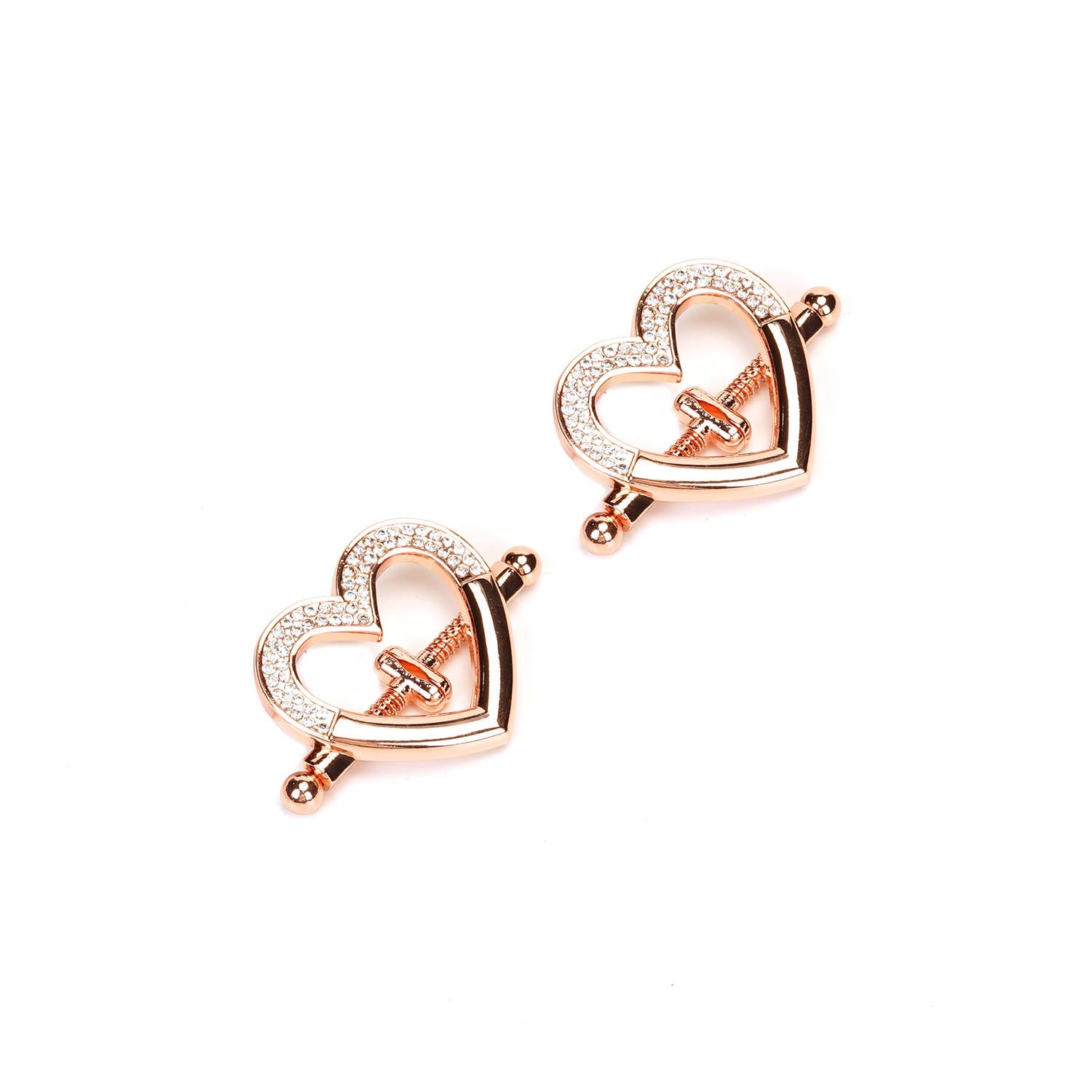 Gorgeous heart-shaped nipple clamps, made of high-quality material, no peculiar smell, and excellent quality, exquisite and unique; Easy to wear on and take off. Can improve the sex fun effect and increase the excitement. Material: Zinc Alloy